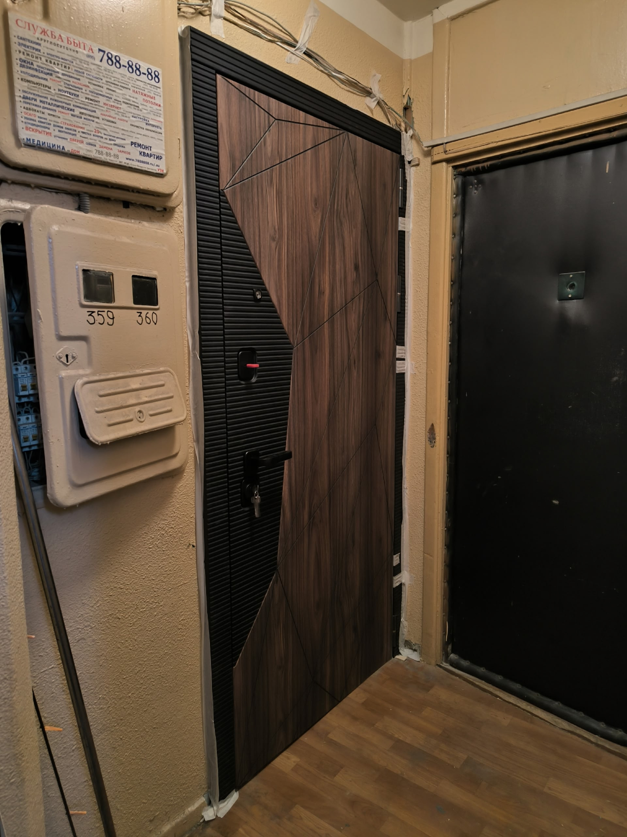 Ограничения касаются улицы: постоянные осадки и прямое солнце сокращают срок службы ламинированной облицовки. Компромисс — ламинат внутри, а снаружи порошковая краска, металлодекор либо уличные панели, рассчитанные на атмосферные нагрузки. В подъездах и тамбурах таких проблем нет.